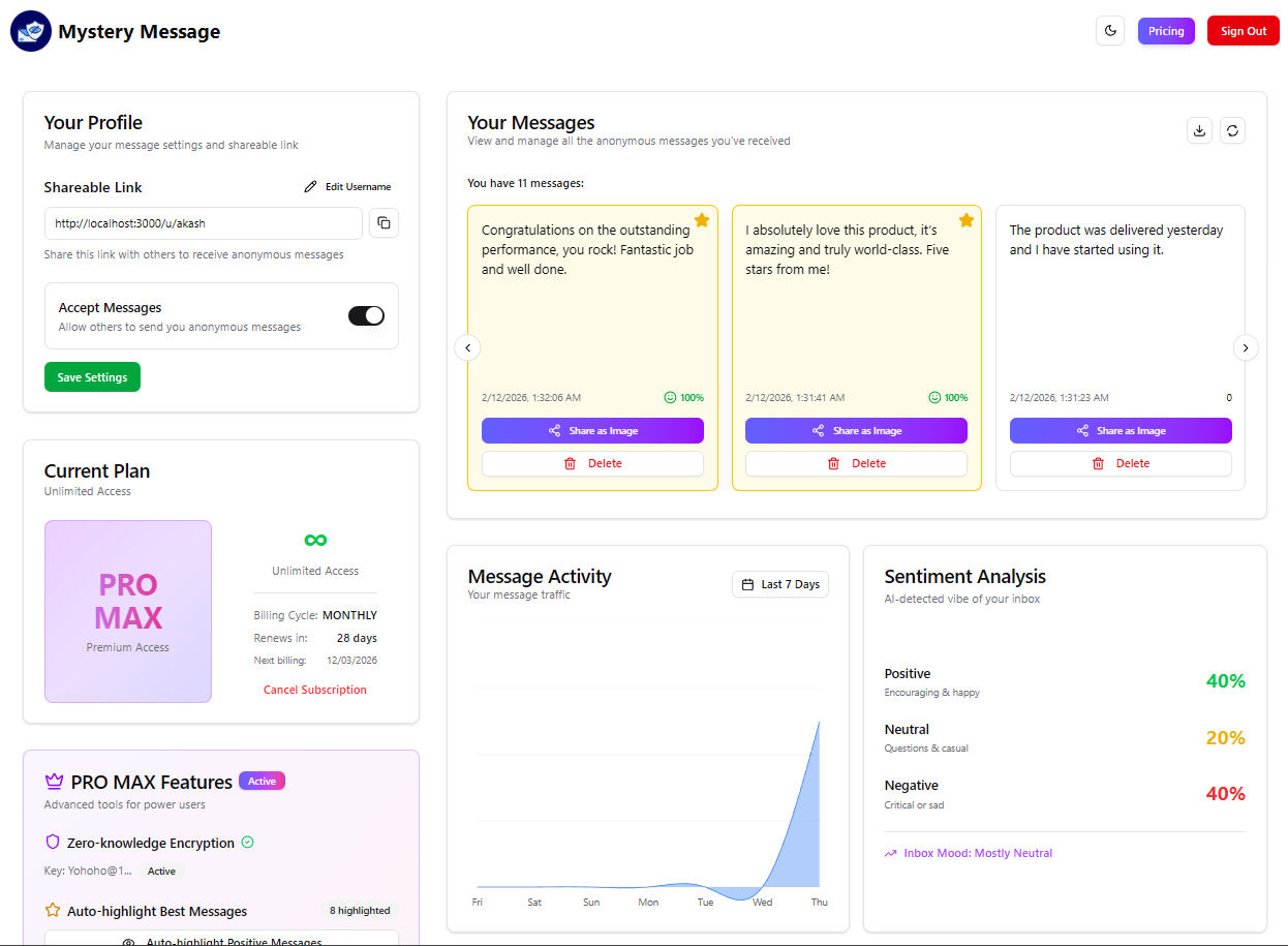 Get your unique message link from the dashboard and share it with friends or on social media.